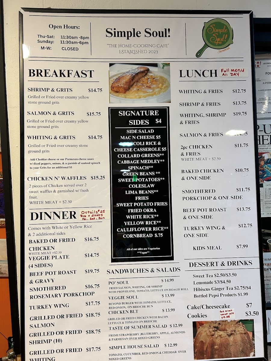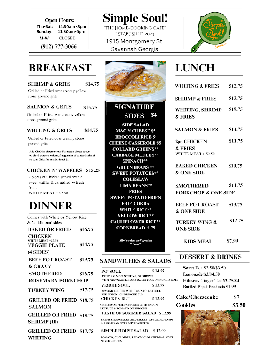 If you’re curious about what makes Southern comfort food so special, the Simple Soul Of Savannah Menu is a good place to start. Tucked away at 1915 Montgomery St in Savannah, Georgia, Simple Soul Of Savannah serves up the kind of dishes that feel like they came straight from a family kitchen. As I looked through the menu, the first thing that stood out was how unapologetically hearty everything sounded - crispy fried chicken, tender smothered pork chops, creamy mac and cheese, and collard greens seasoned just right.